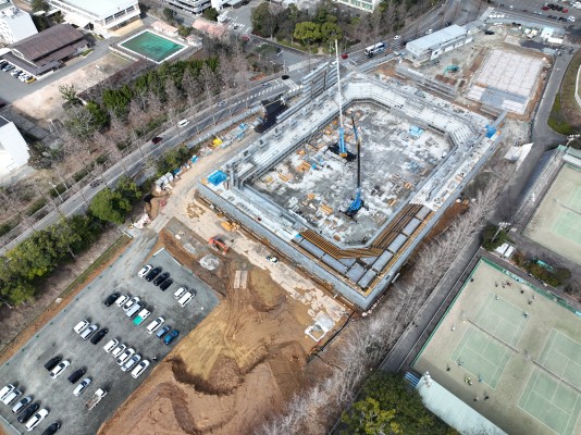 丹下健三と協働したことで知られる構造家の坪井善勝が単独で設計した唯一の作品と言われており、市から坪井に示された設計条件は「文献にもない新しい構造形式をとること」だったという。舞台設計には今泉善一が協力しているほか、坪井に師事した斎藤公男が設計・工事監理を手がけているという。